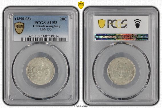 PCGS评级AU53广东龙毫,290米一枚!