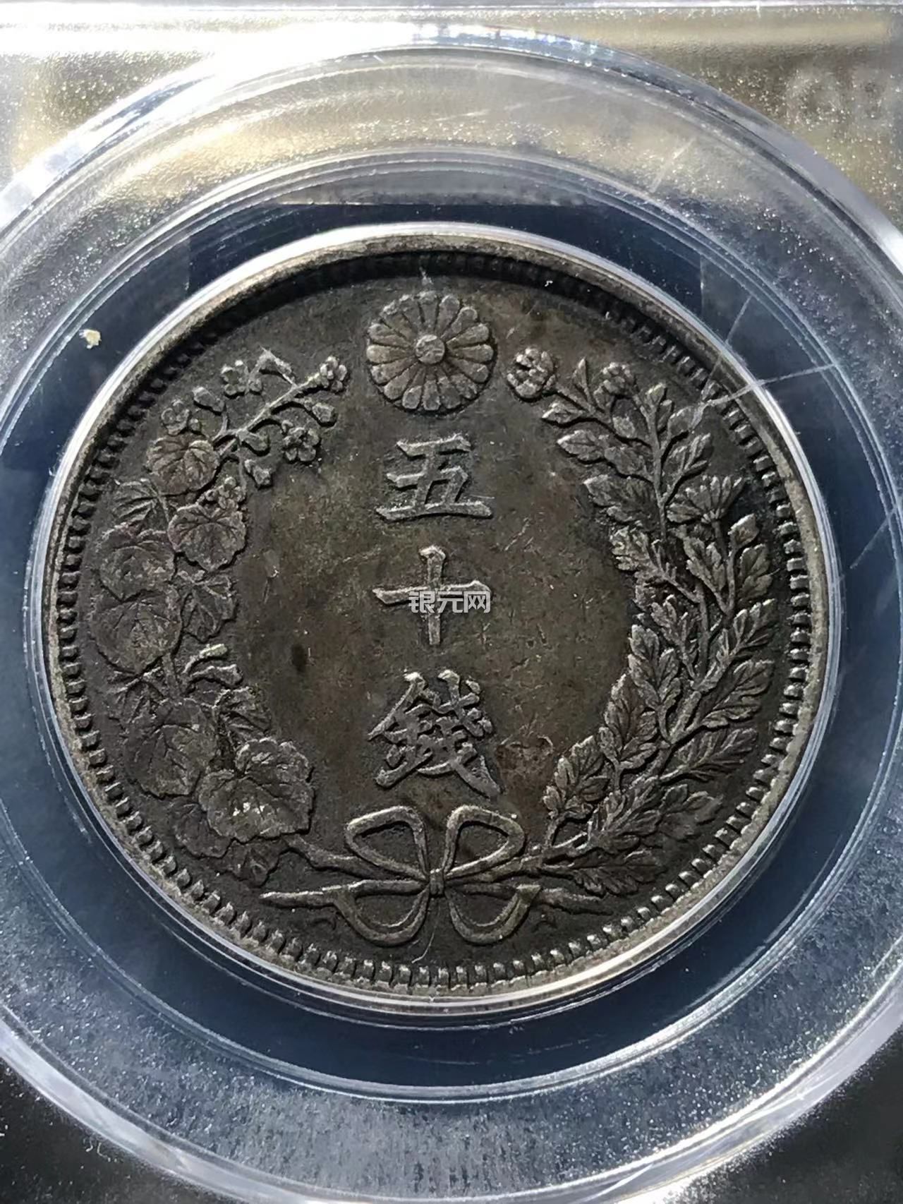 公博评级AU53黑包浆日本半圆龙五十钱-165米