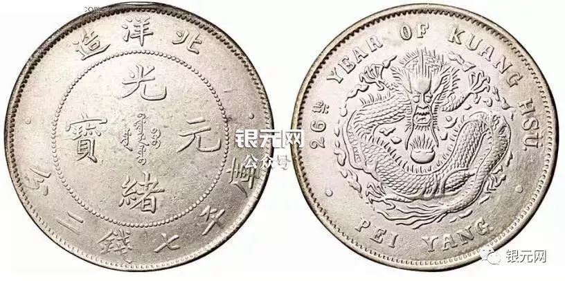 22、光绪元宝,26年北洋龙七钱二分: